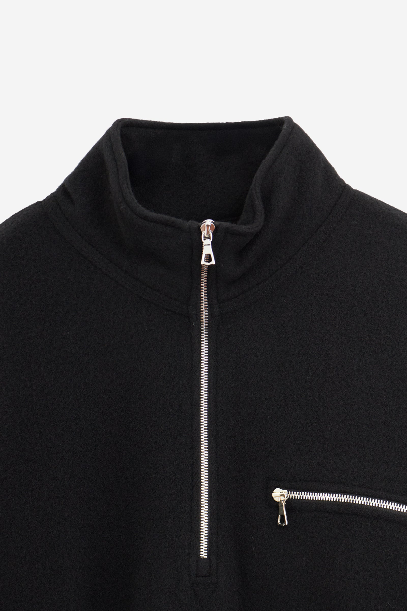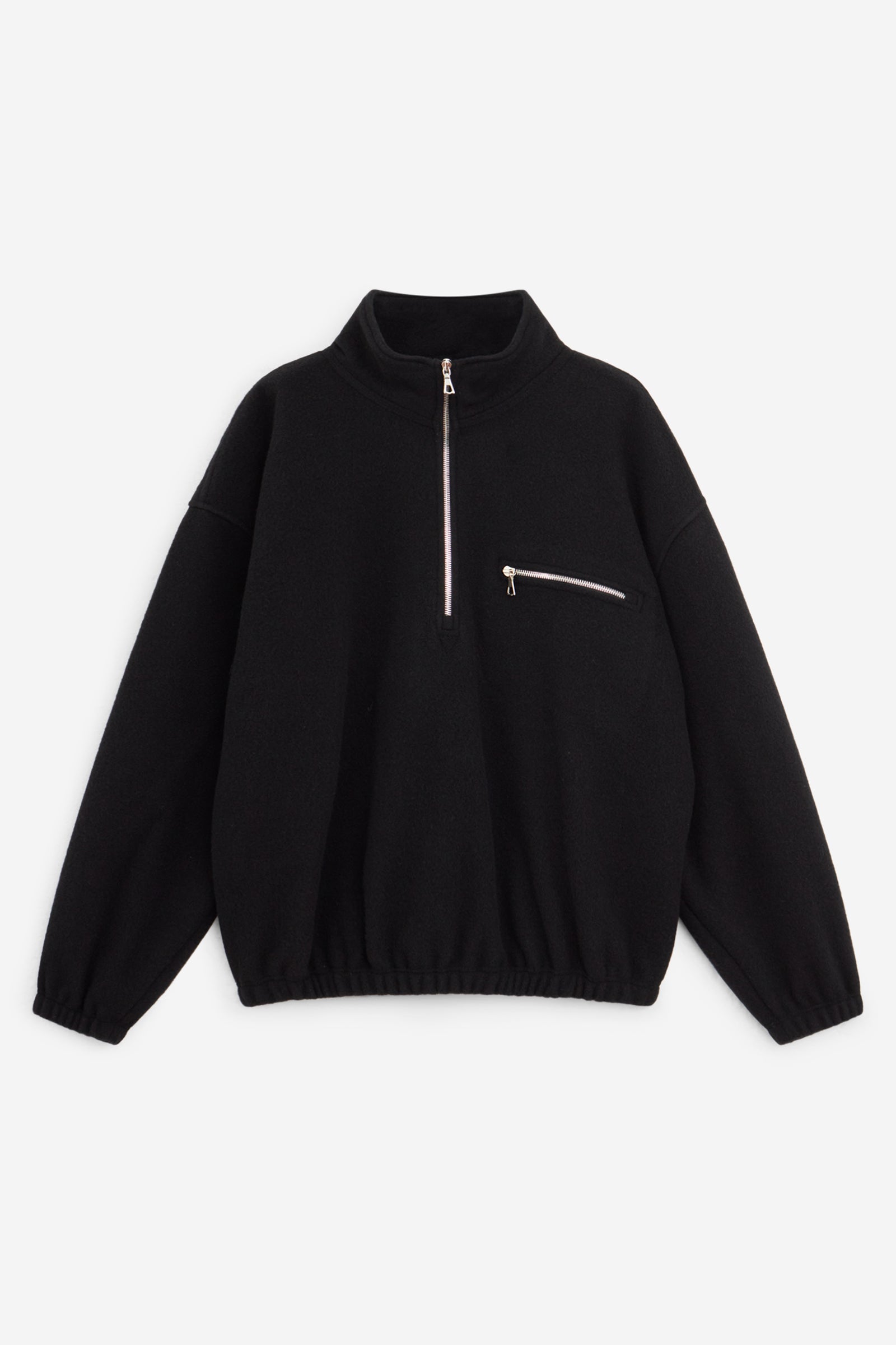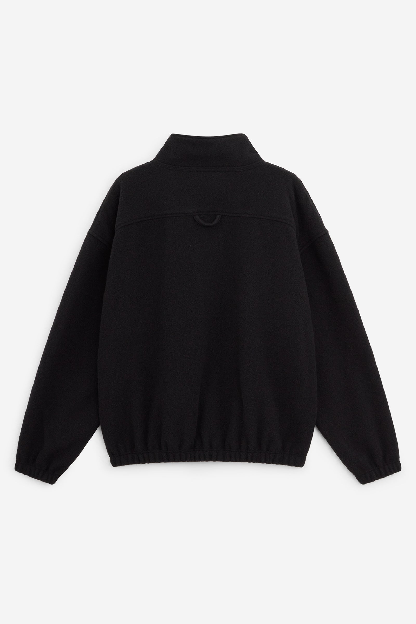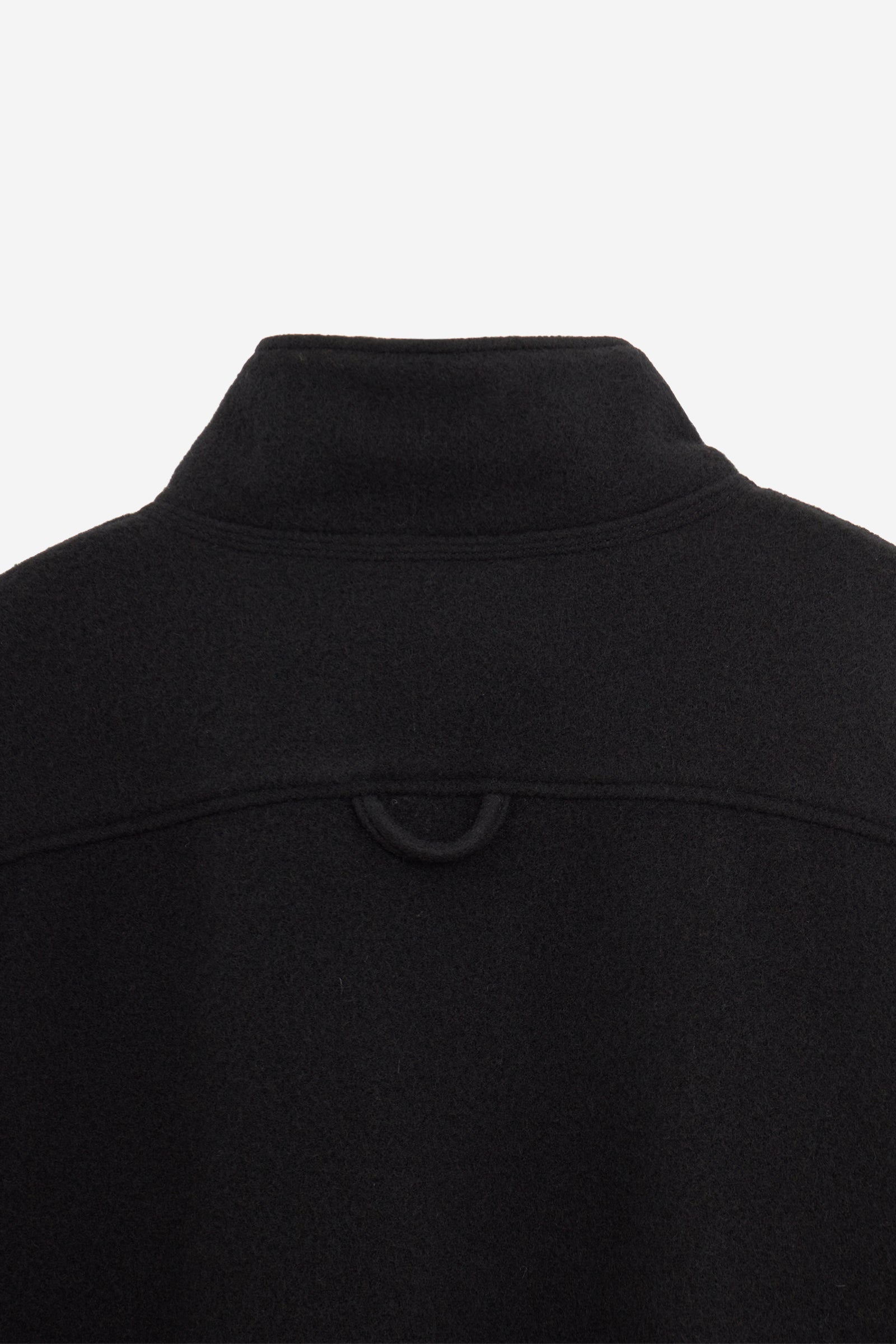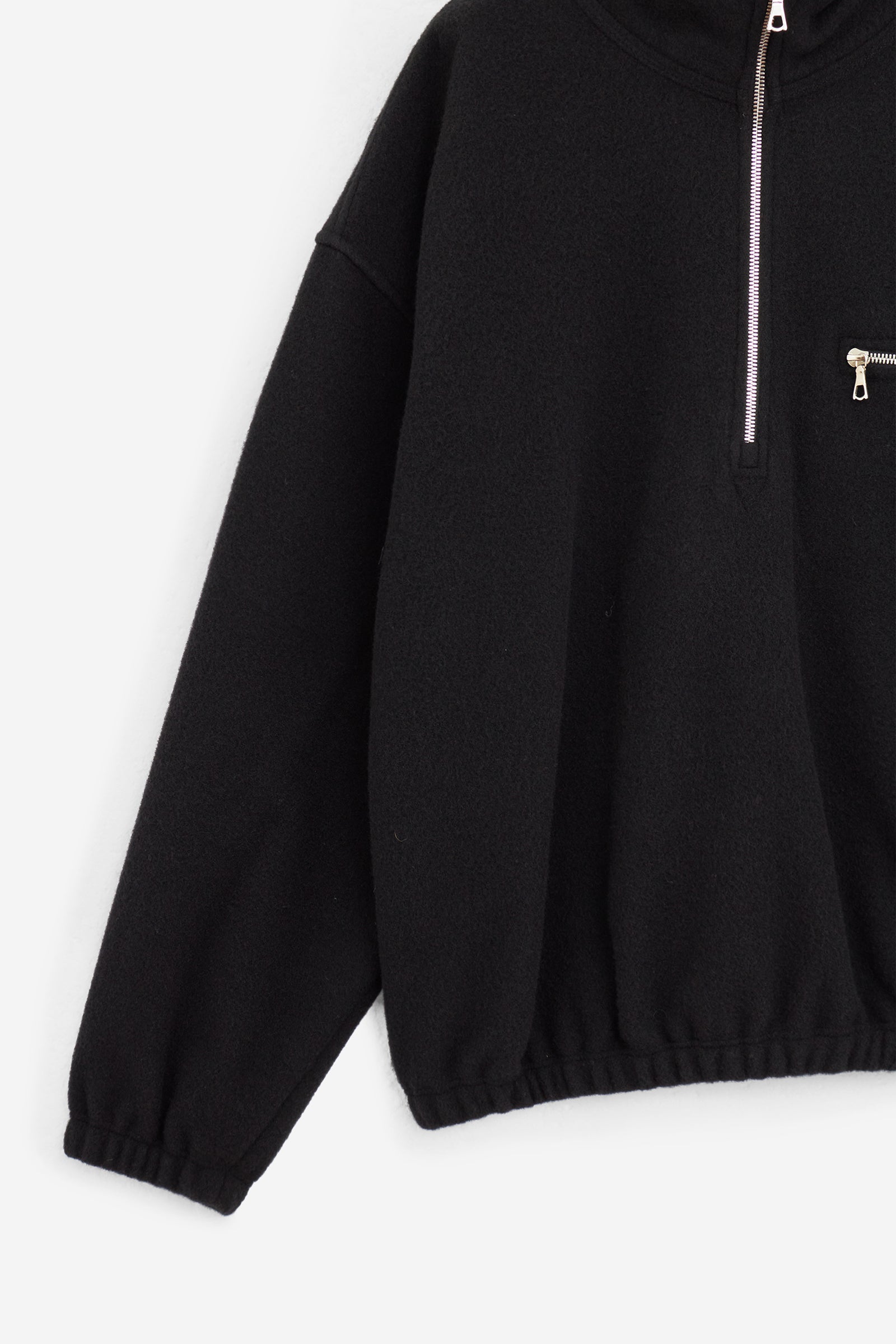 Giacca in lana nera con zip, fondo e fondo manica elasticizzati