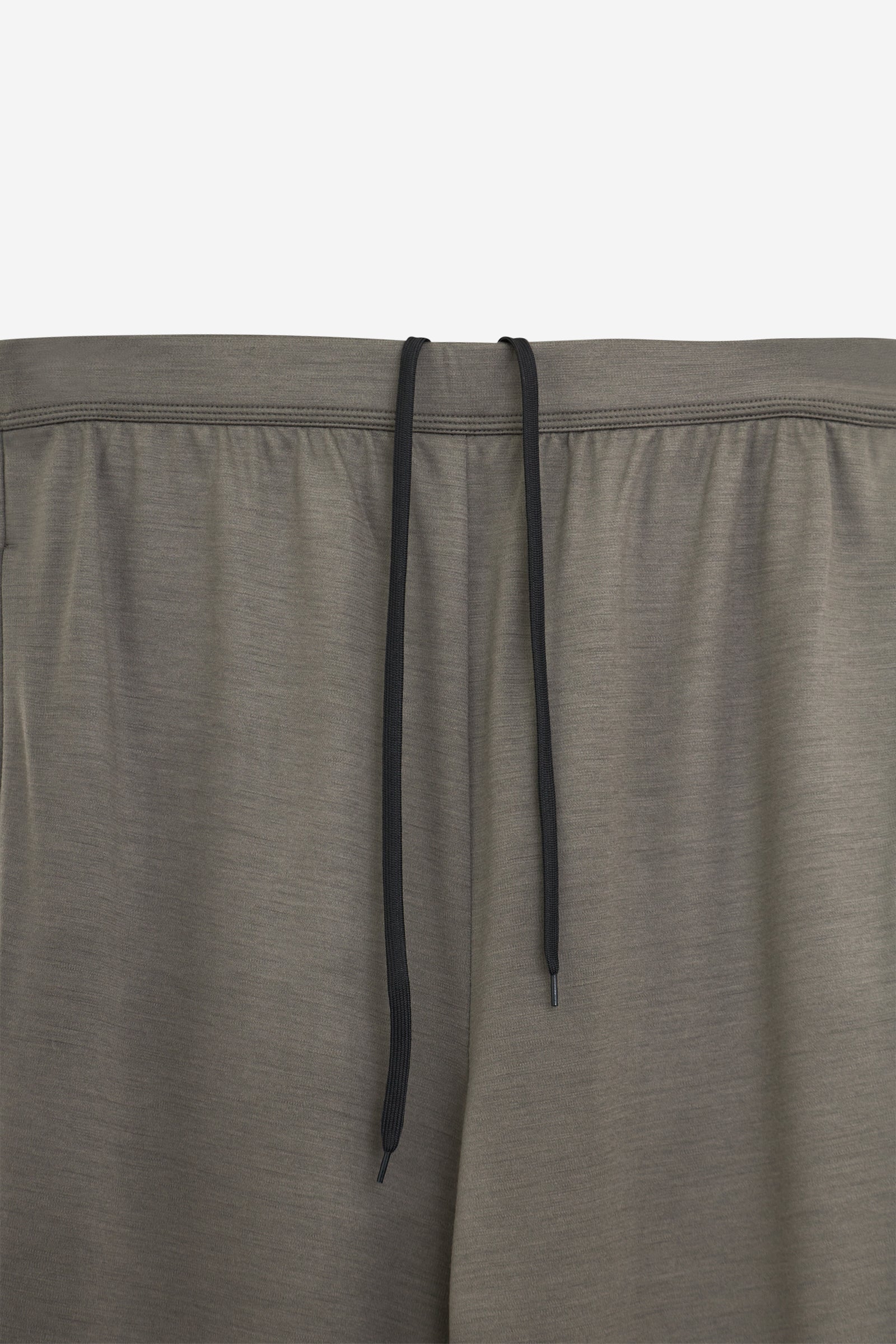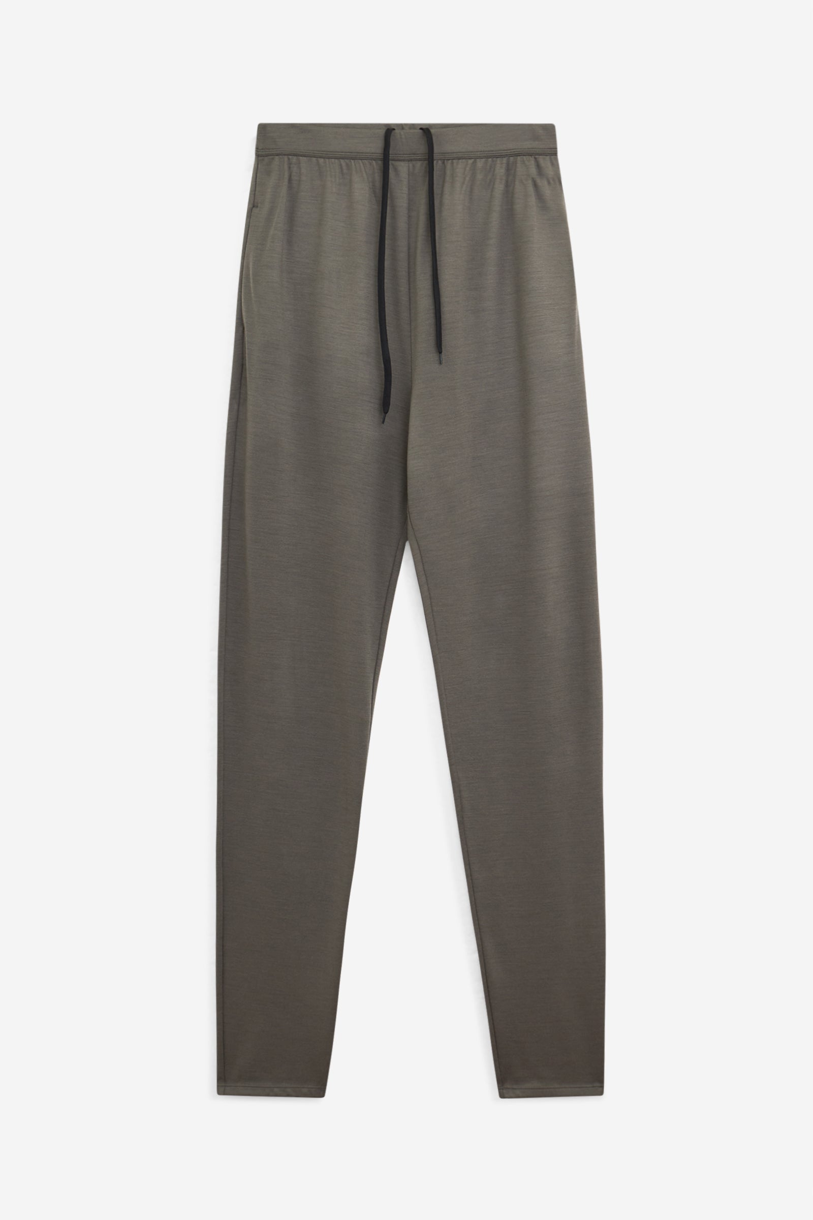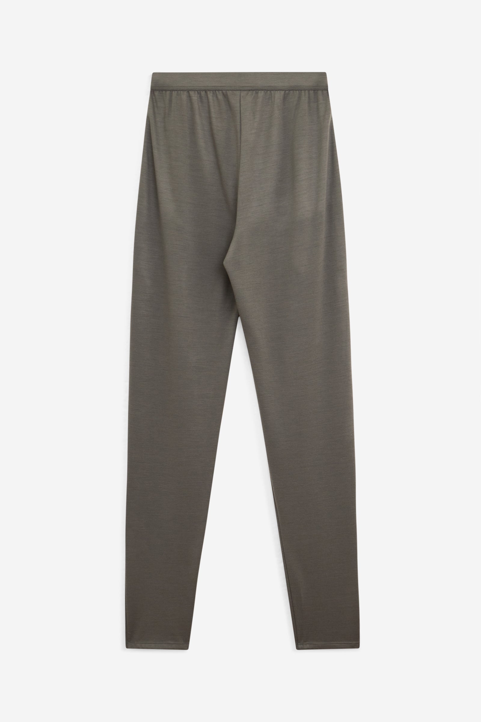 Pantaloni in lana khaki, vita elasticizzata con coulisse regolabile, fondo gamba con polsini elasticizzati