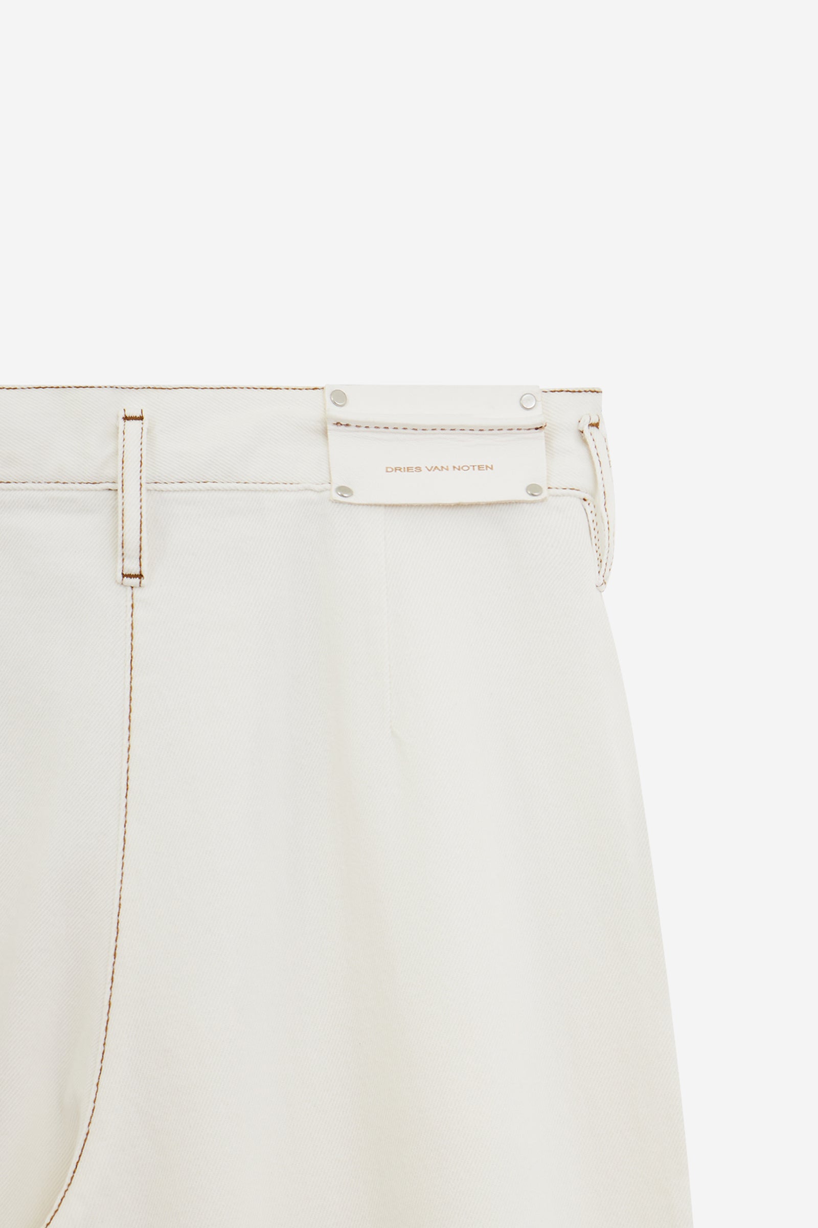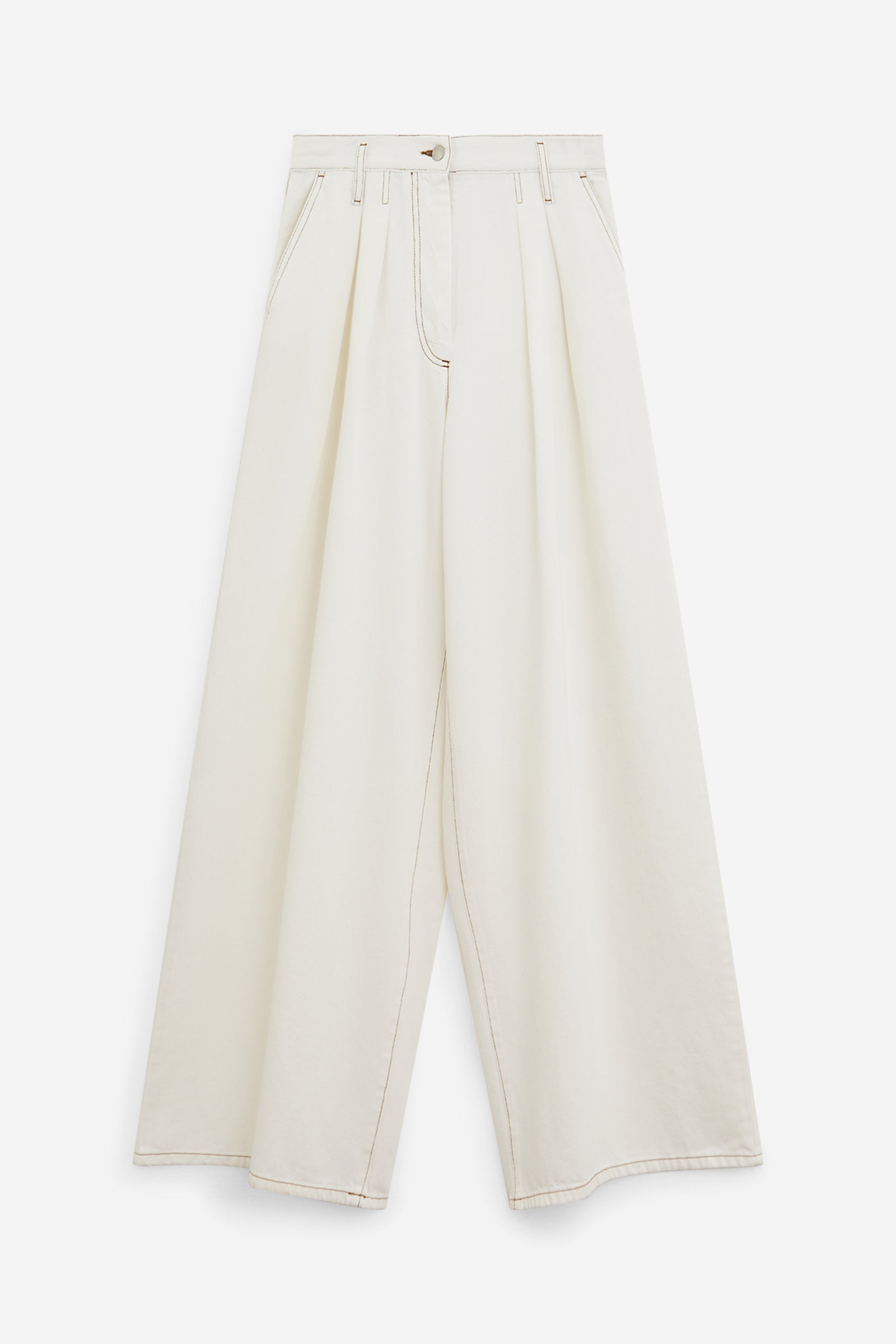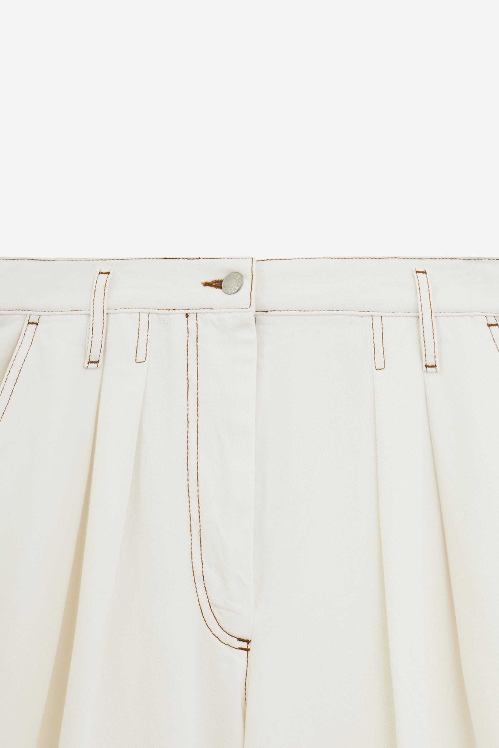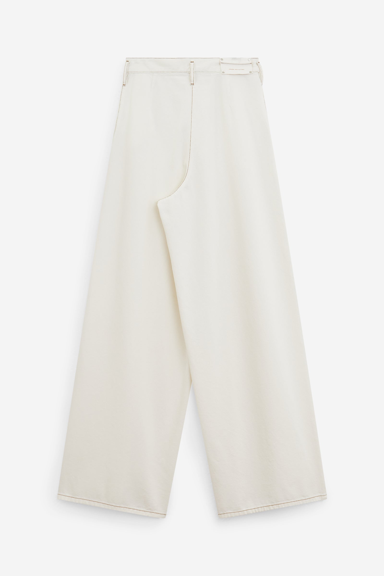Pantalone PAMPLONA DENIM in Cotone Panna, gamba ampia, passanti in vita, chiusura a bottone, tasche frontali, logo sul retro