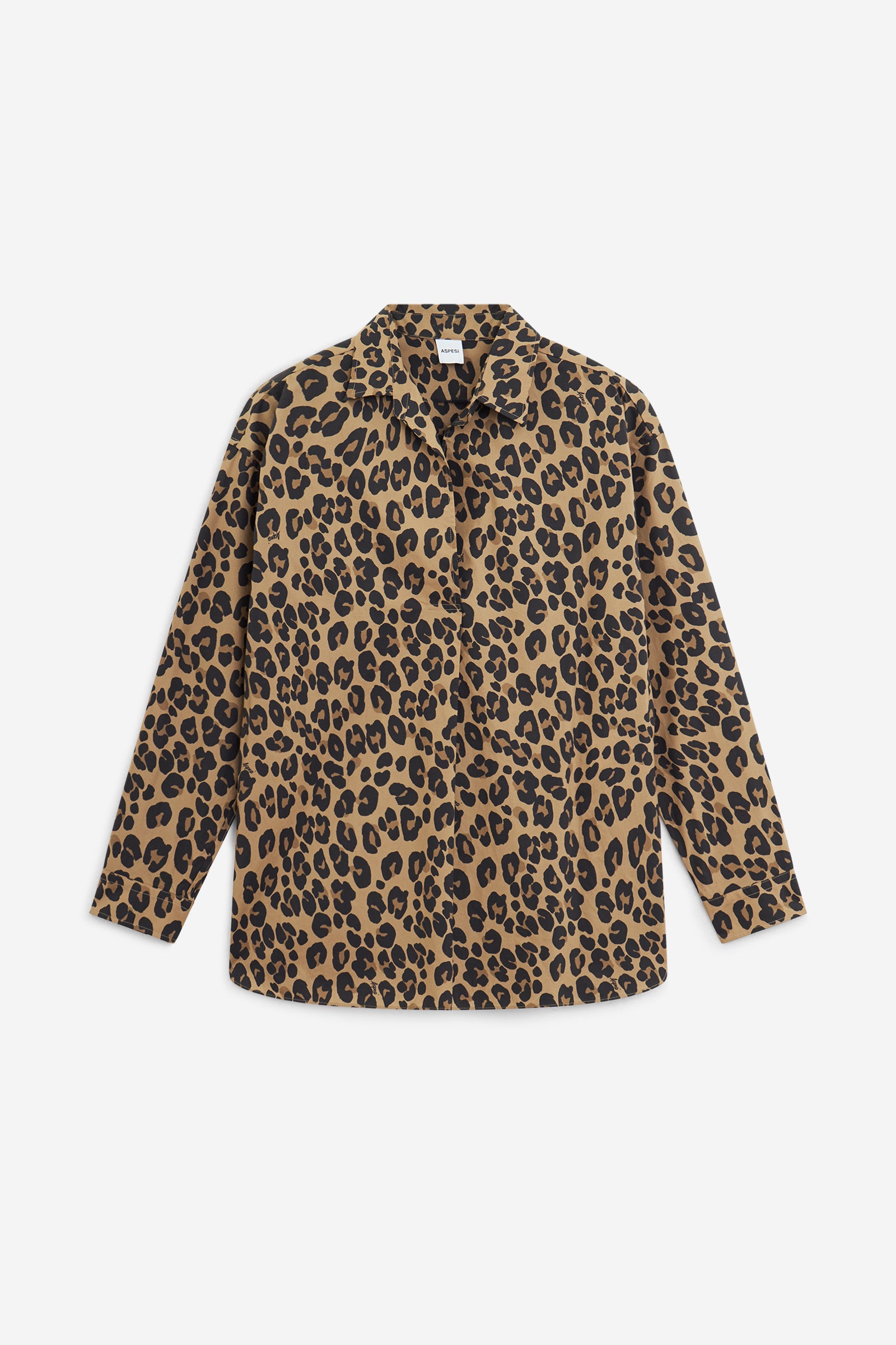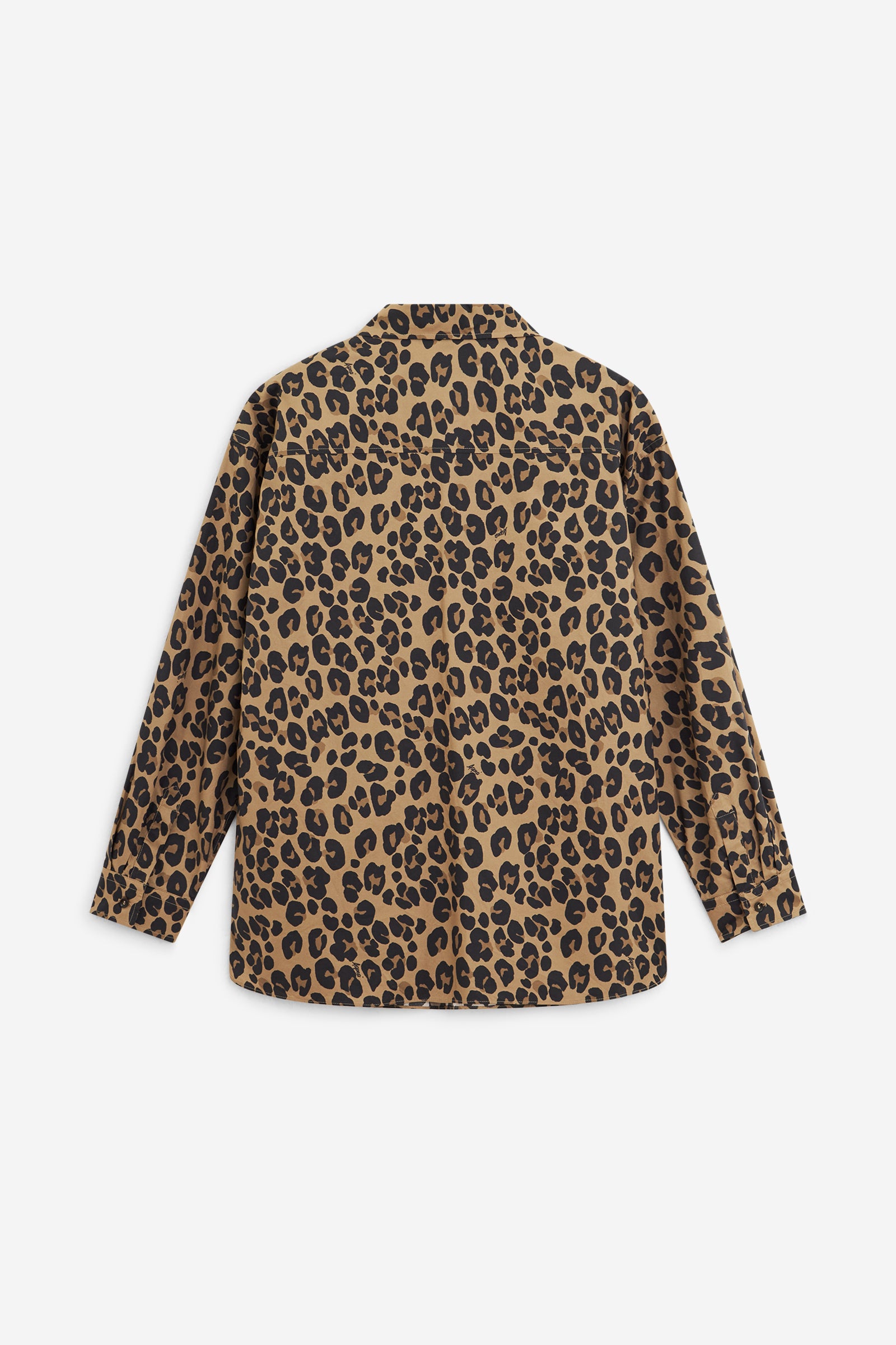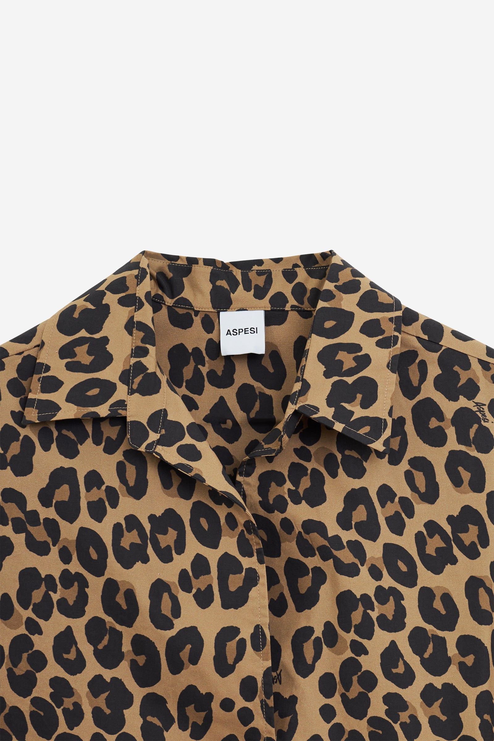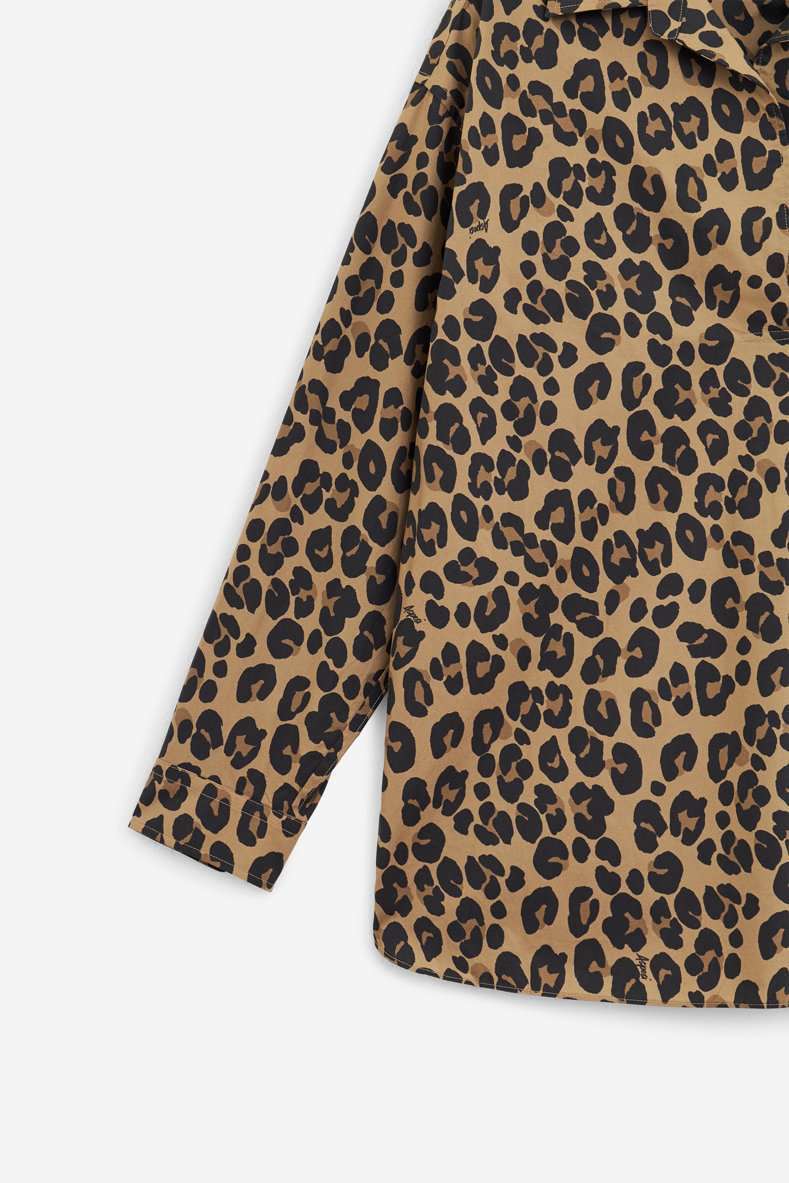 Camicia in Cotone Animalier, maniche lunghe, colletto classico, abbottonatura frontale, polsini con bottone, orlo curvo