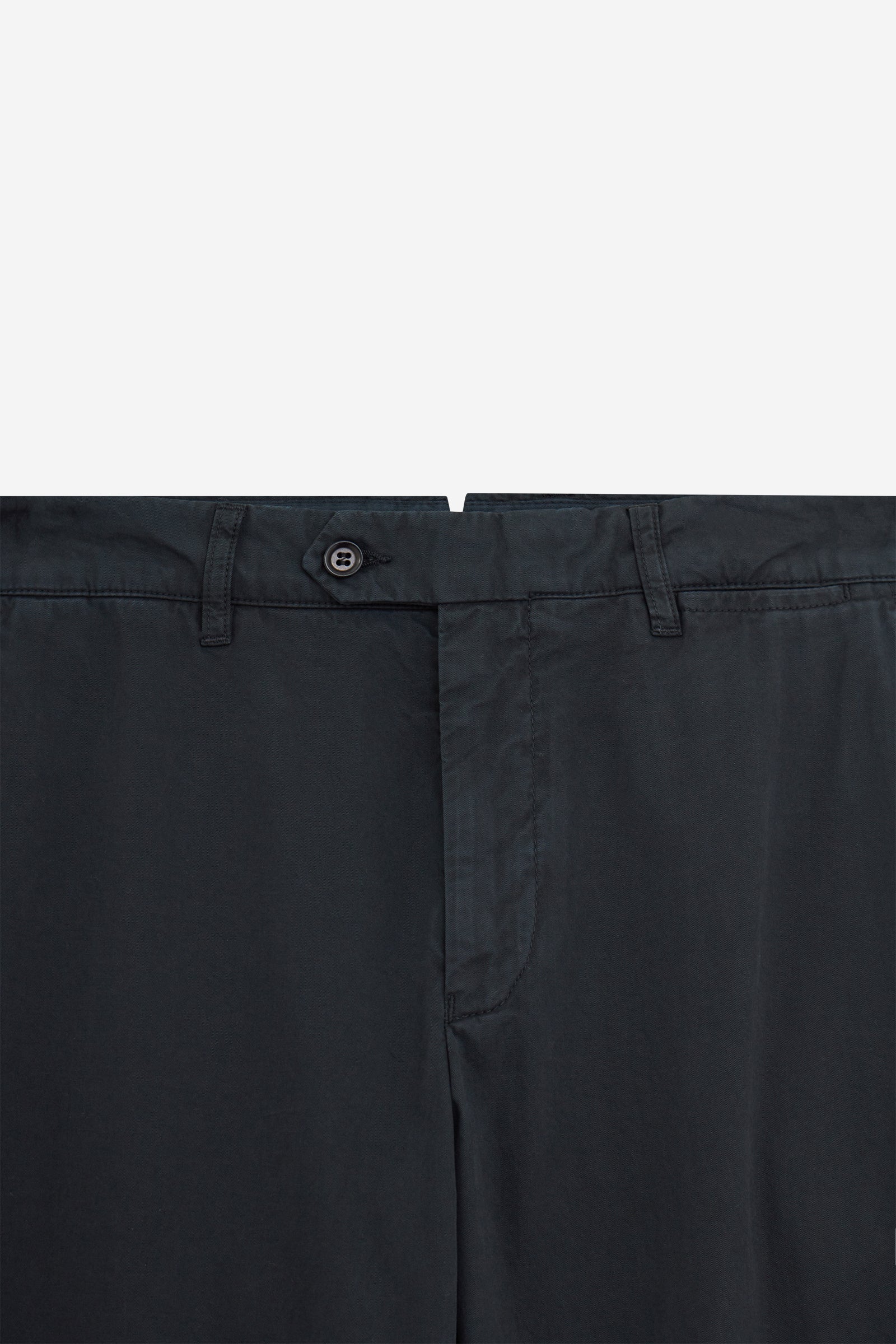Pantalone in Cotone Dark Navy, tasche frontali, chiusura a bottone, tasche posteriori, passanti in vita