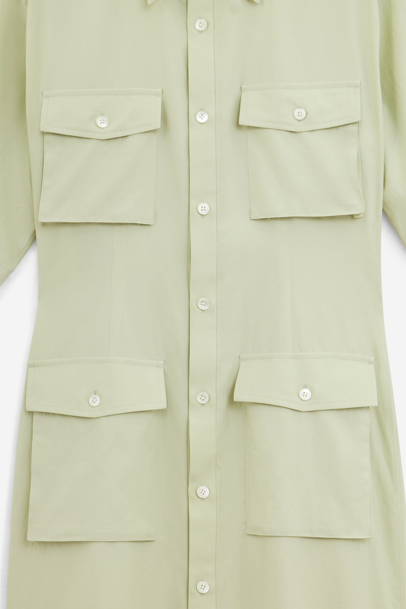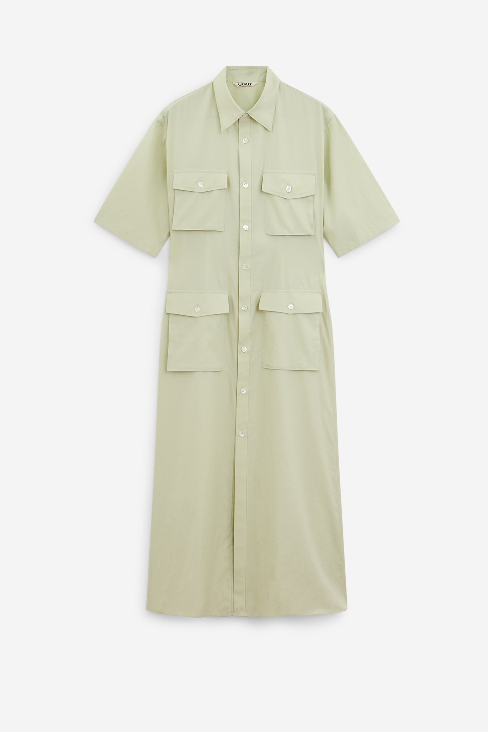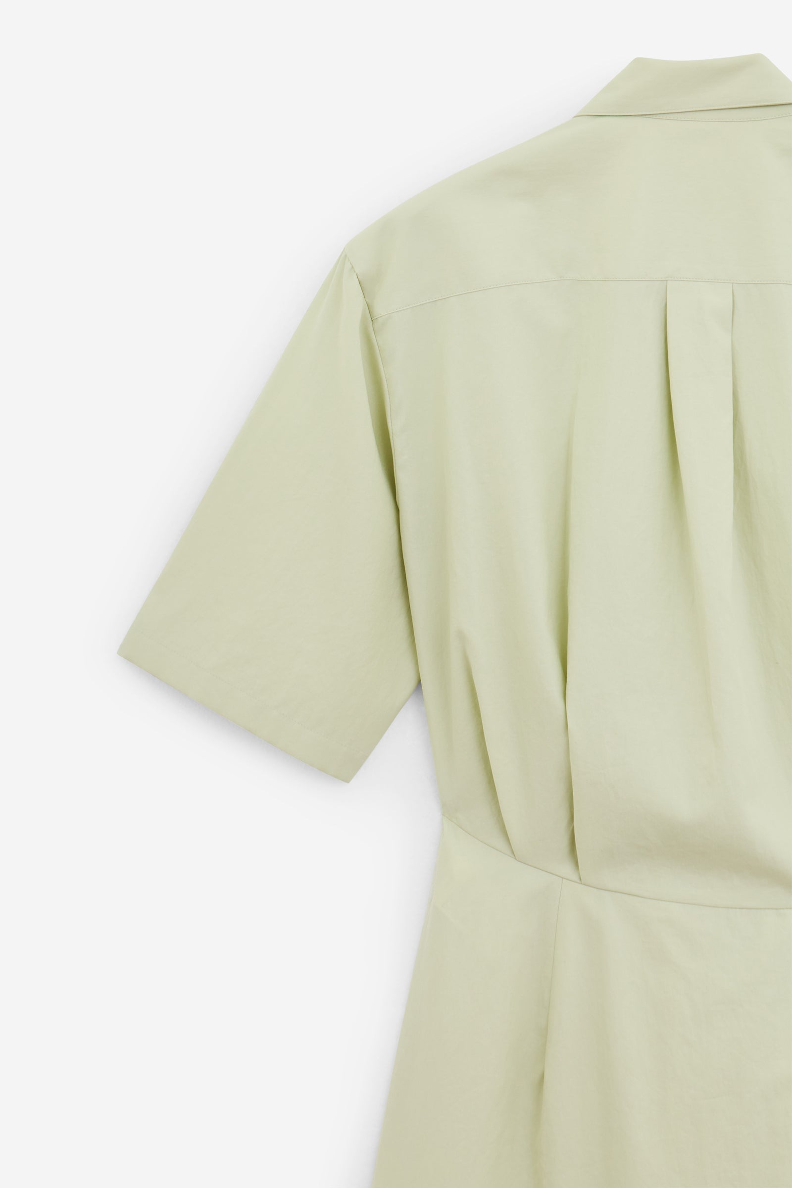 Abito WASHED FINX TWILL in Cotone Verde, colletto classico, maniche corte, tasche frontali, abbottonatura frontale