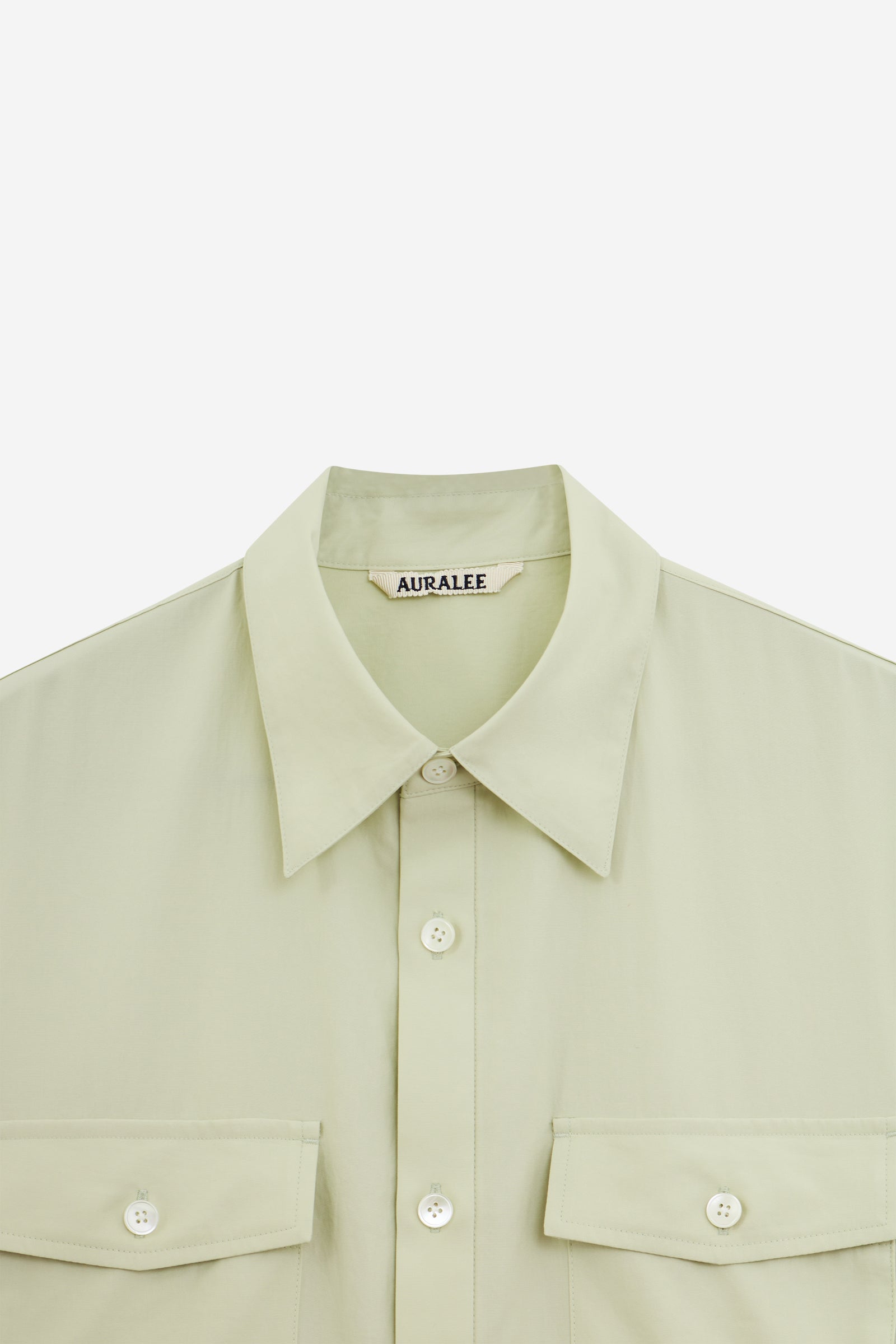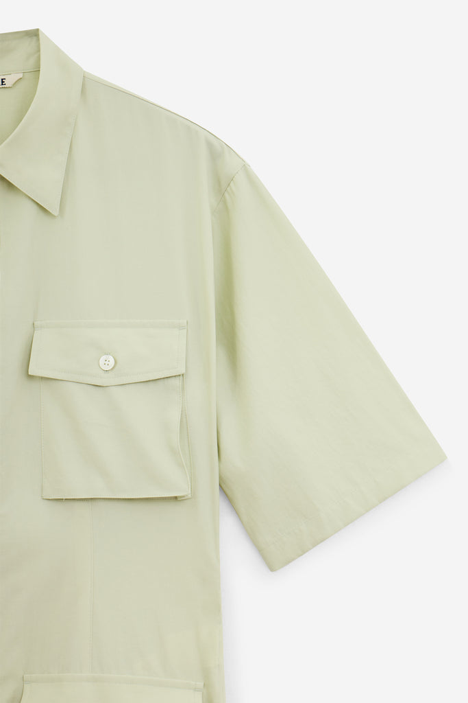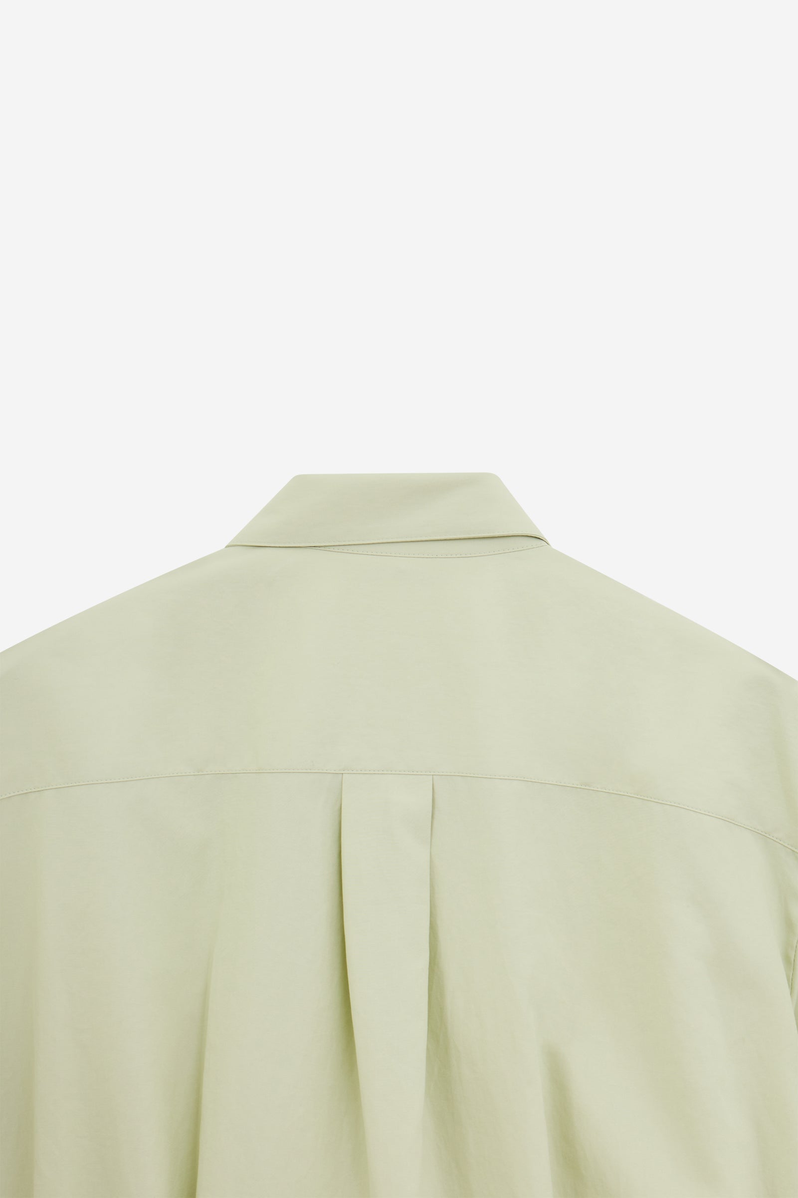 Abito WASHED FINX TWILL in Cotone Verde, colletto classico, maniche corte, tasche frontali, abbottonatura frontale