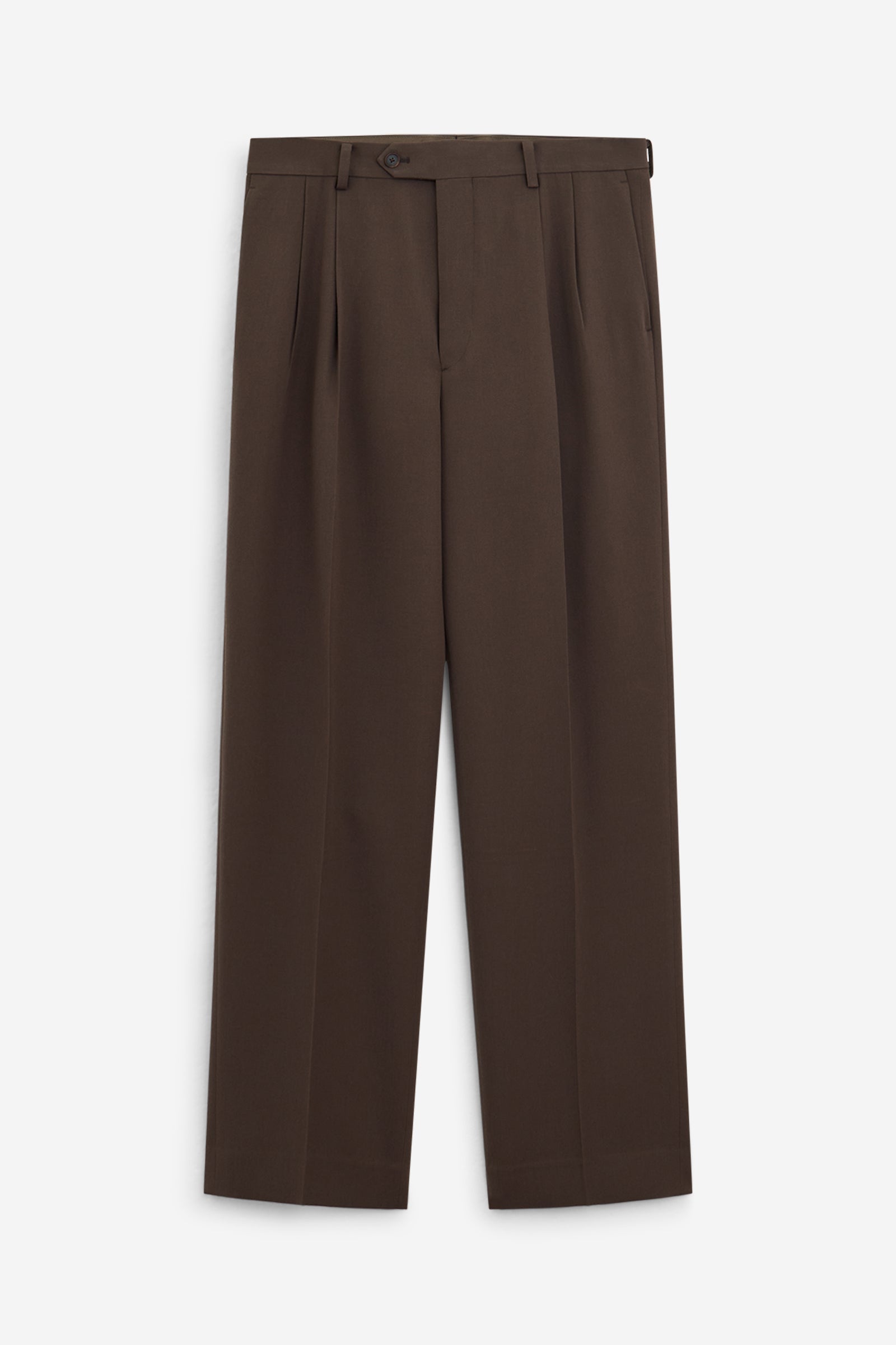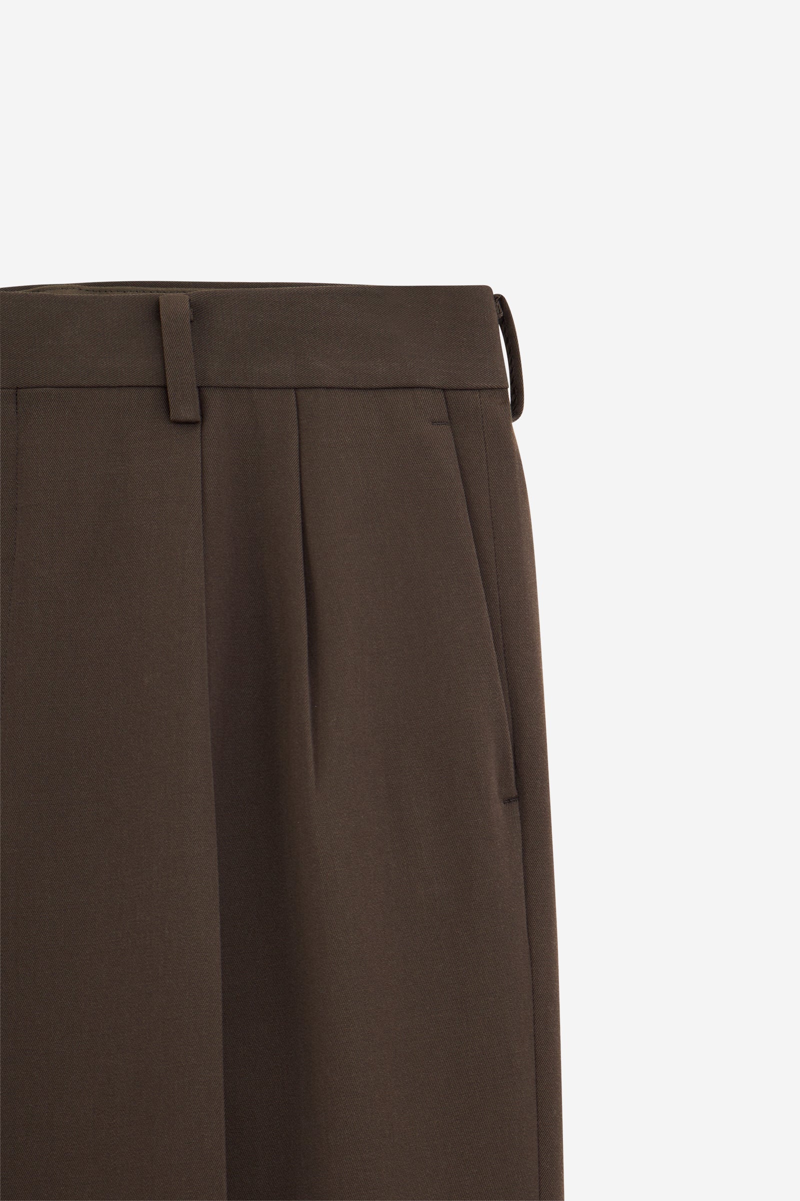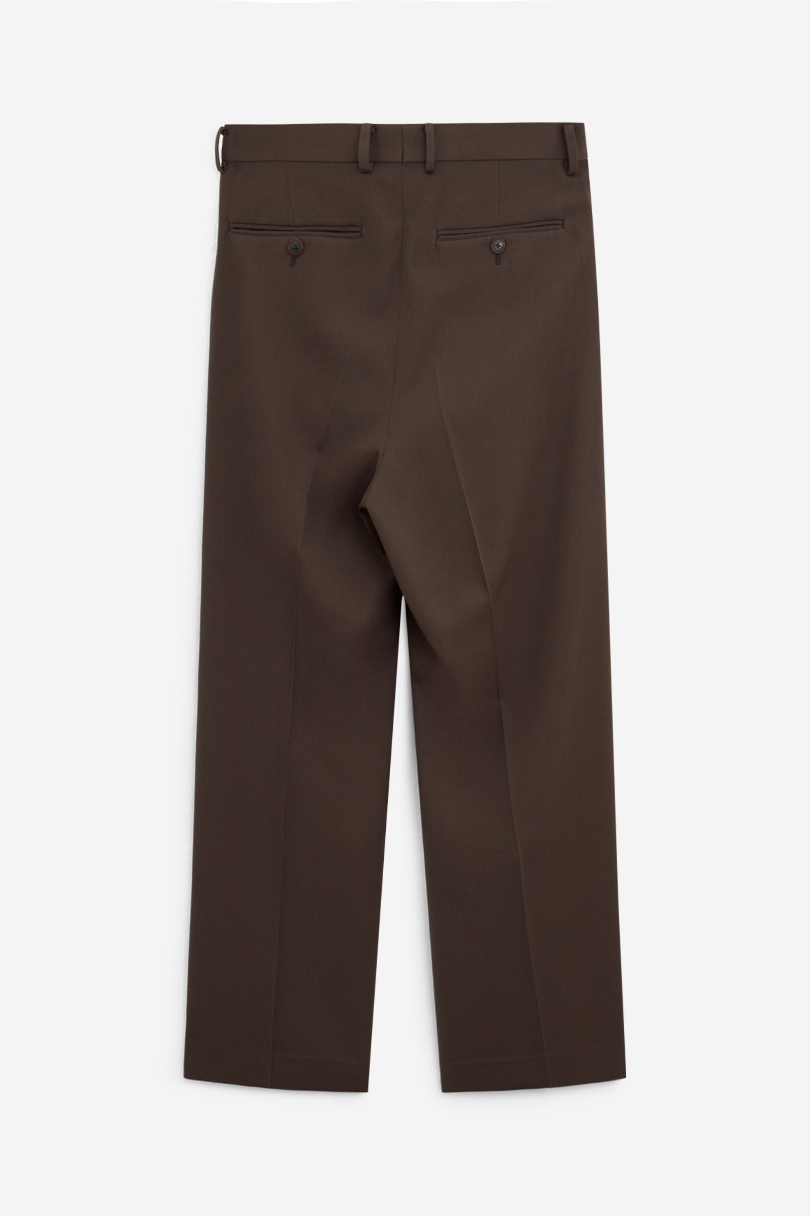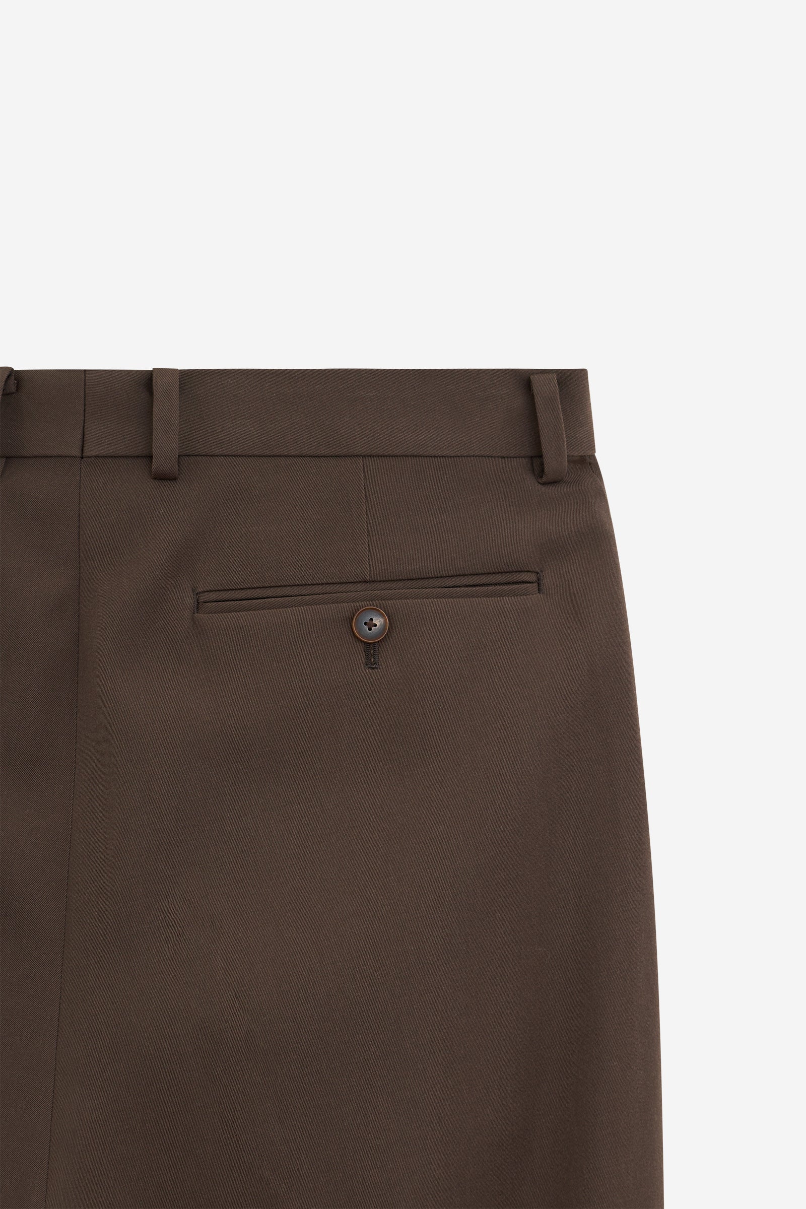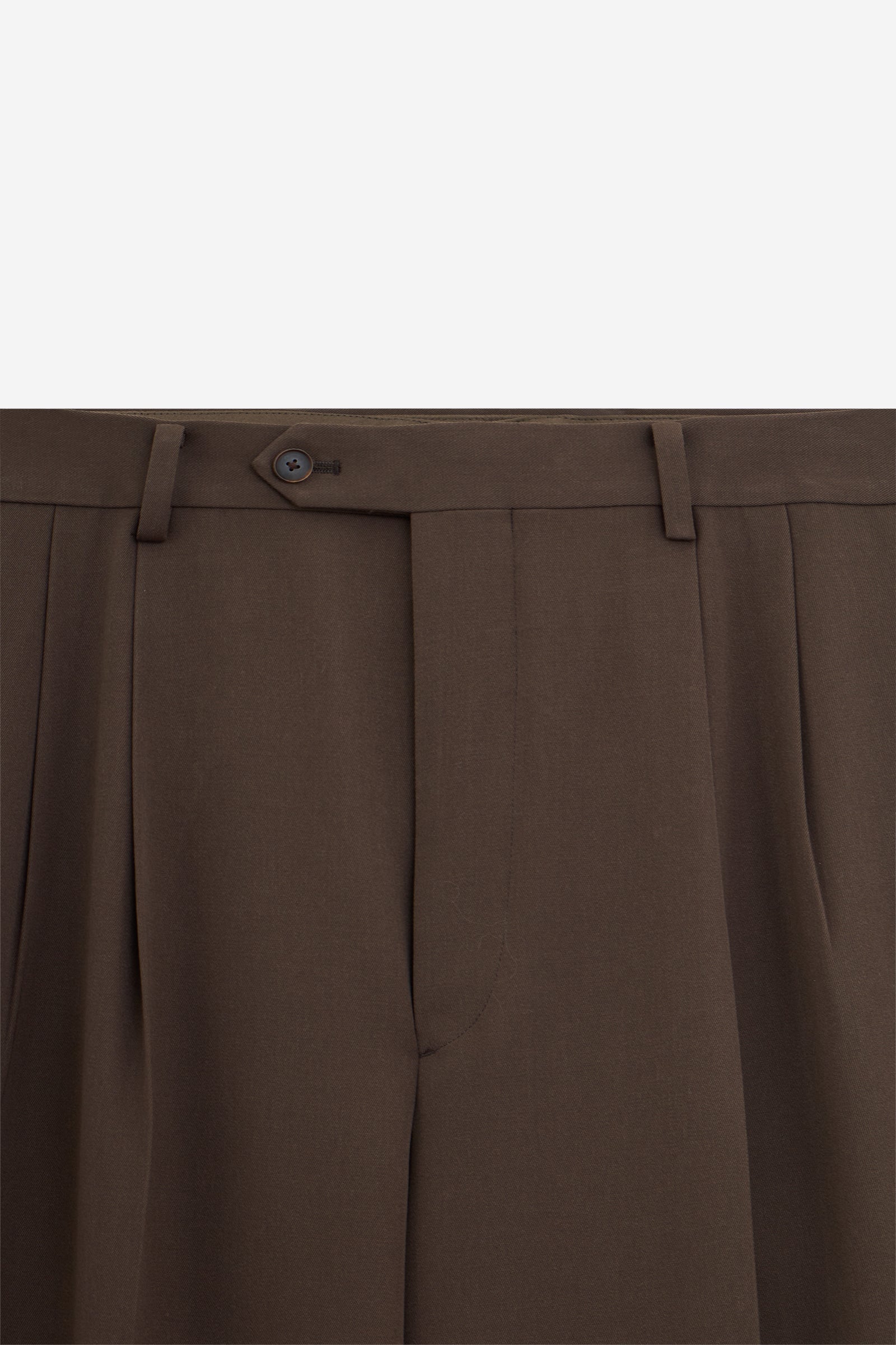 Pantalone LIGHT WOOL GABARDINE in Lana Marrone, passanti in vita, tasche posteriori, chiusura a bottone, tasche frontali
