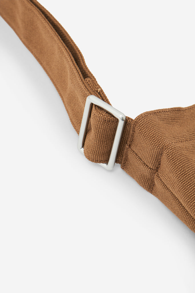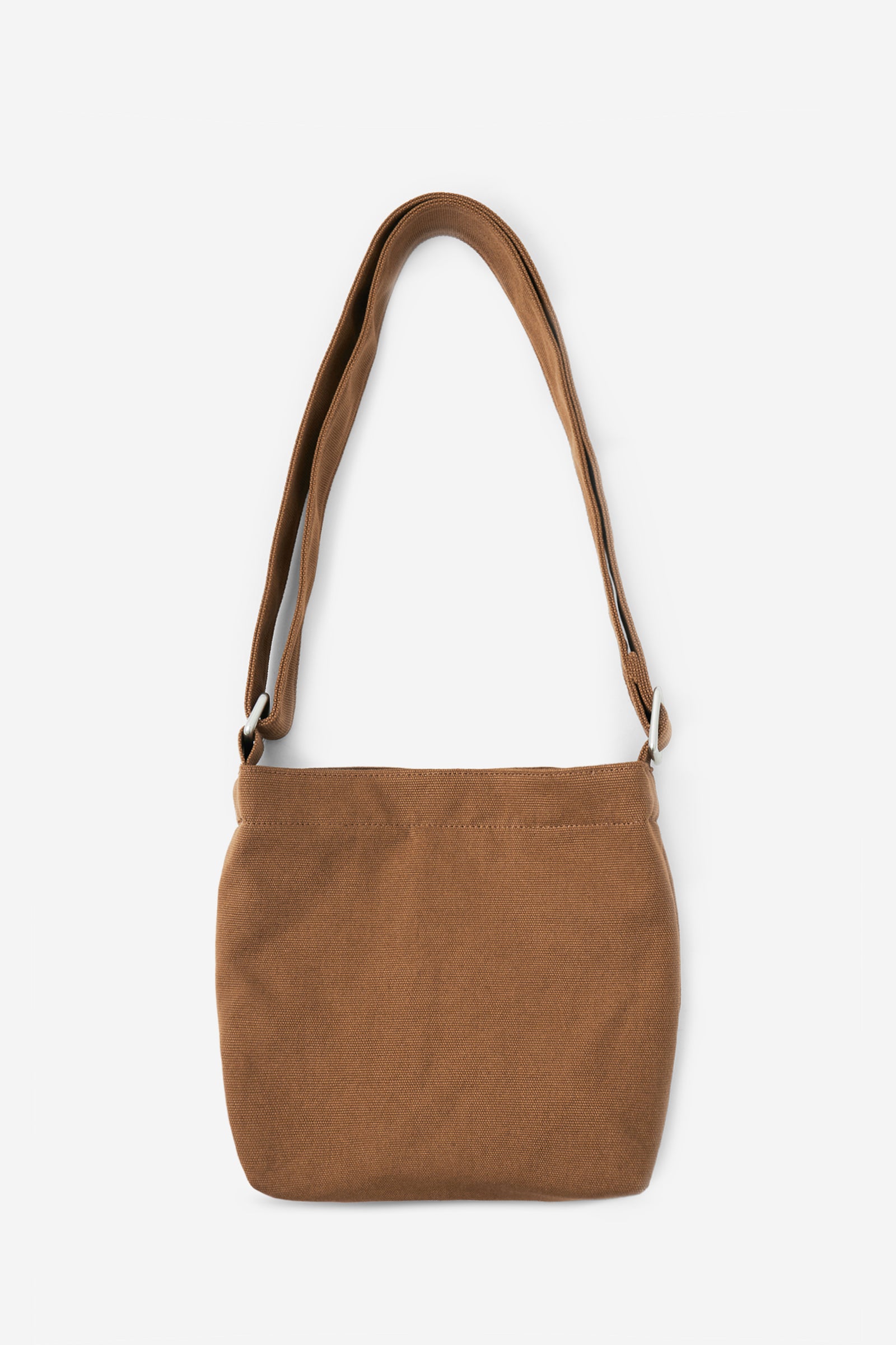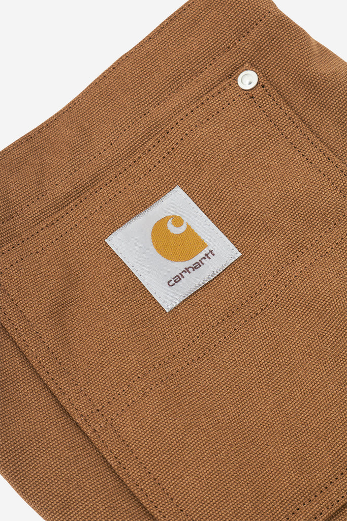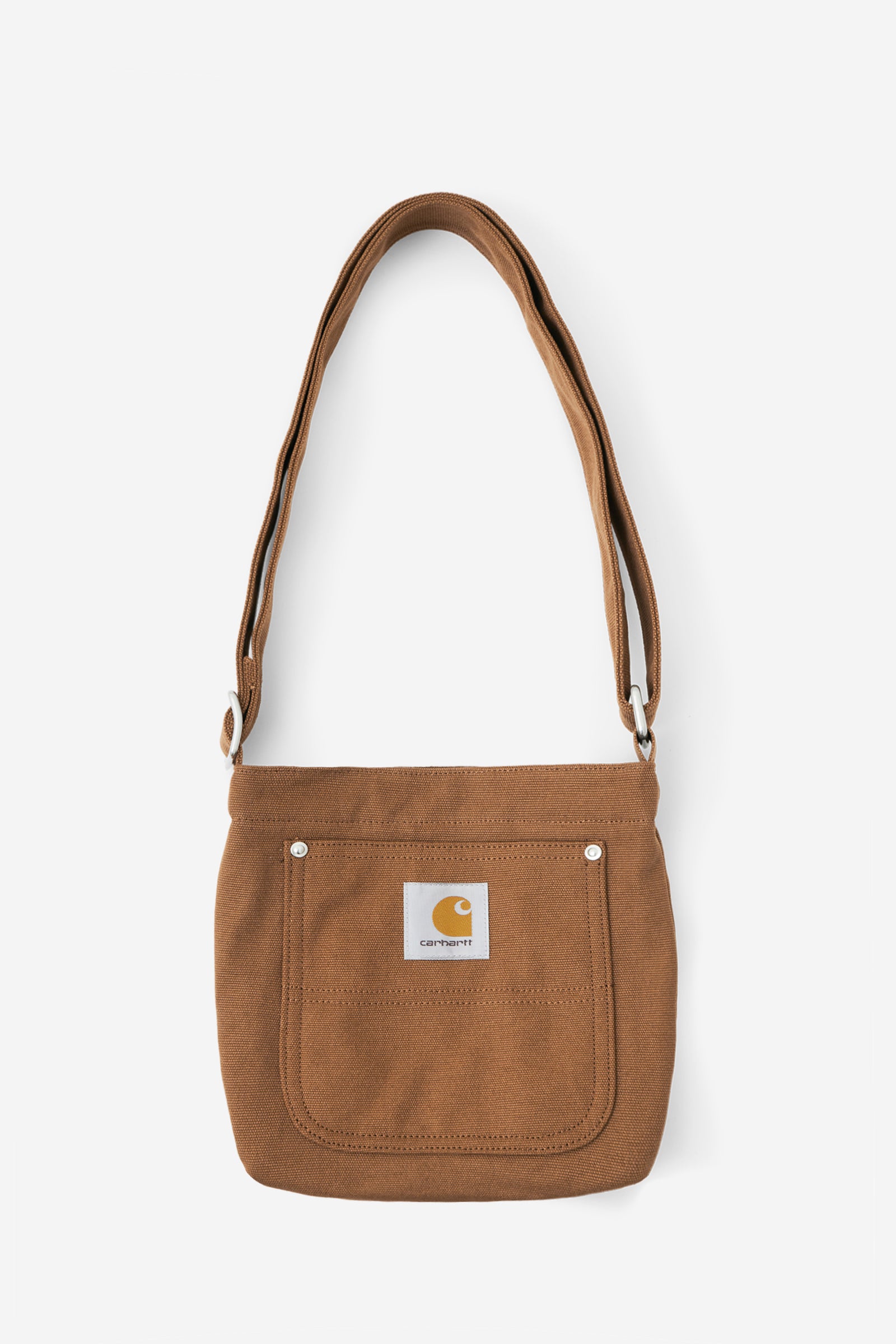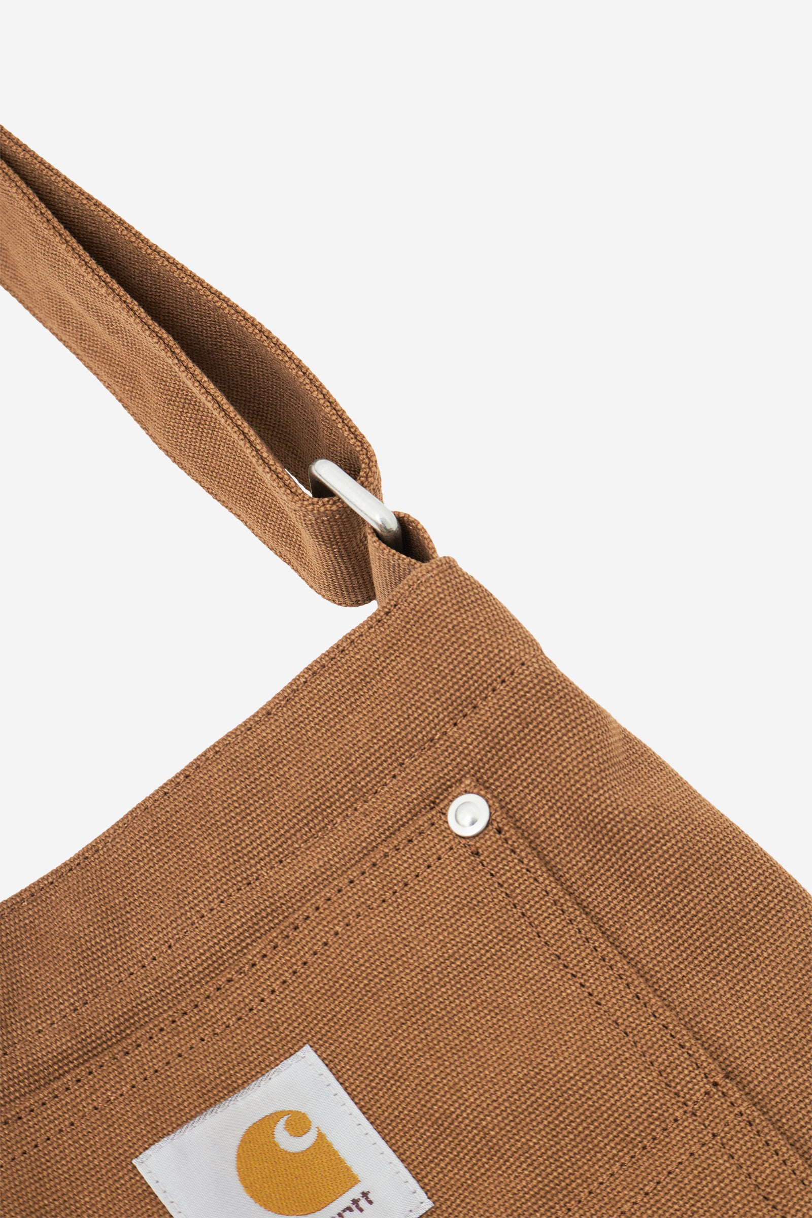 La borsa è realizzata in tela Dearborn foderata, con apertura principale con bottone a pressione nascosto. Sul davanti sono presenti una tasca applicata e un'etichetta quadrata tessuta