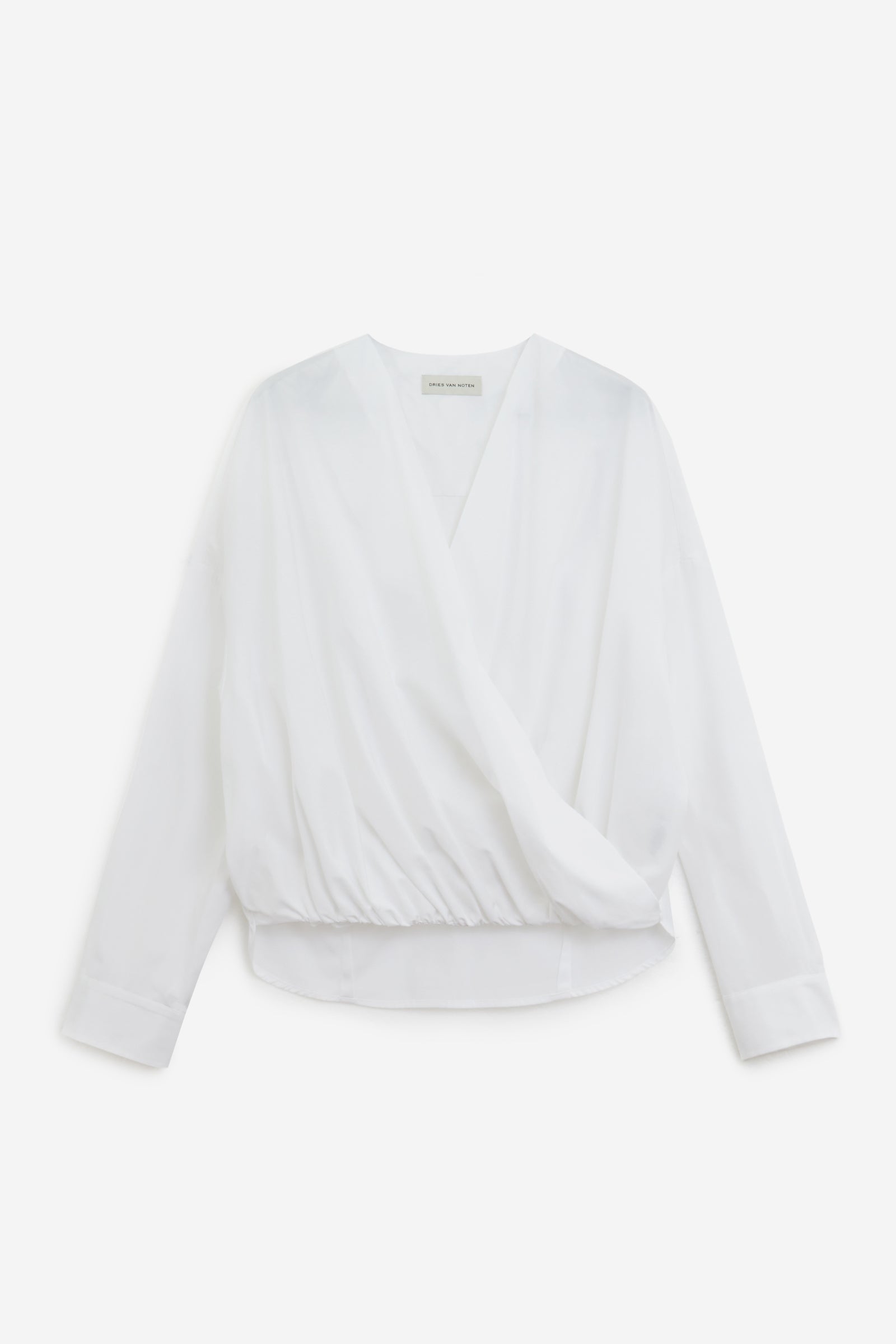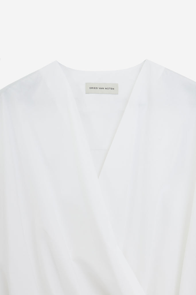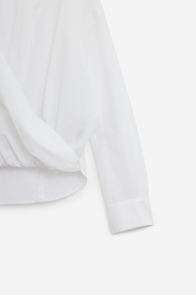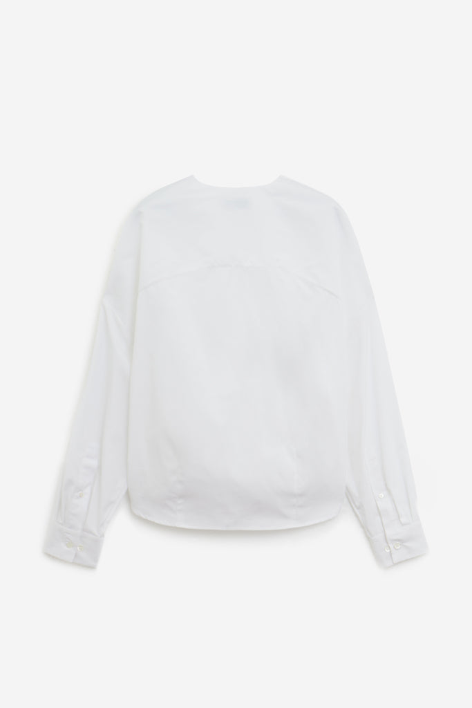 Camicia CAMIEL in Cotone Bianco, maniche lunghe, orlo curvo, scollo a v, polsini con bottone