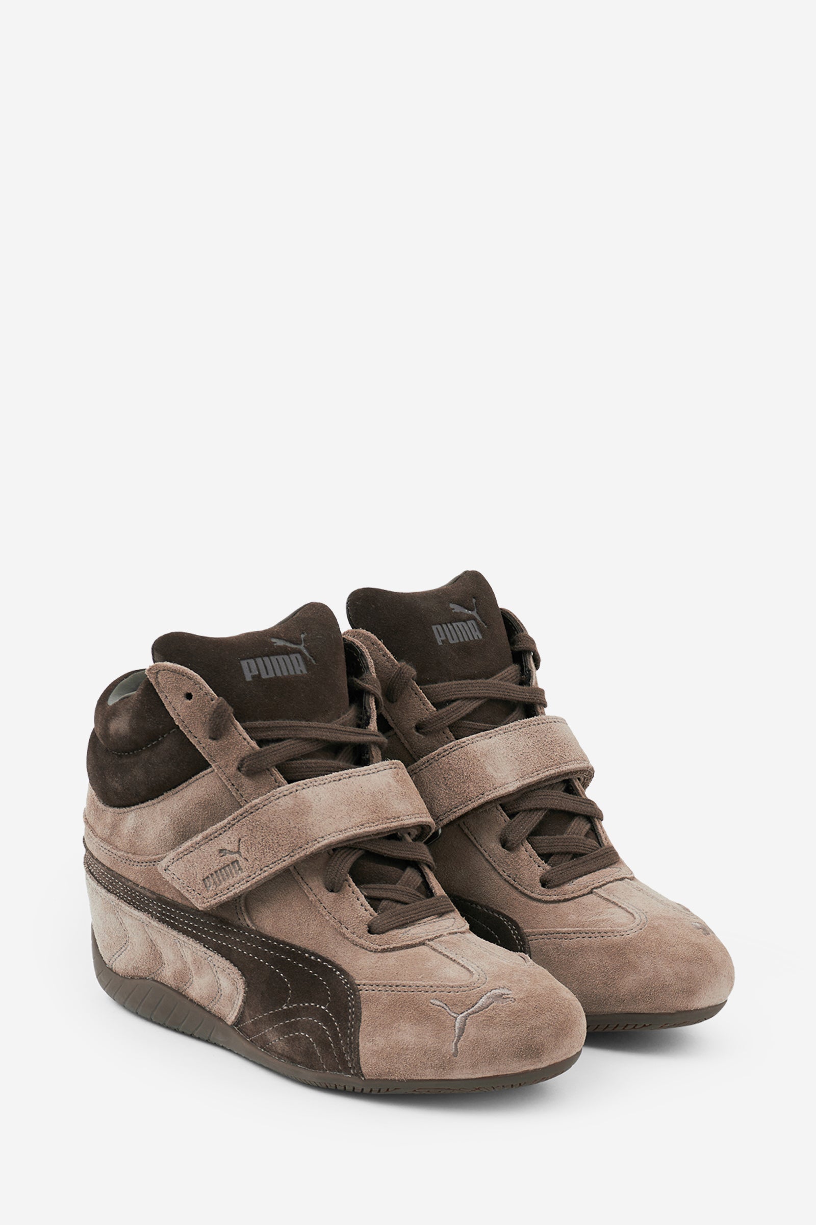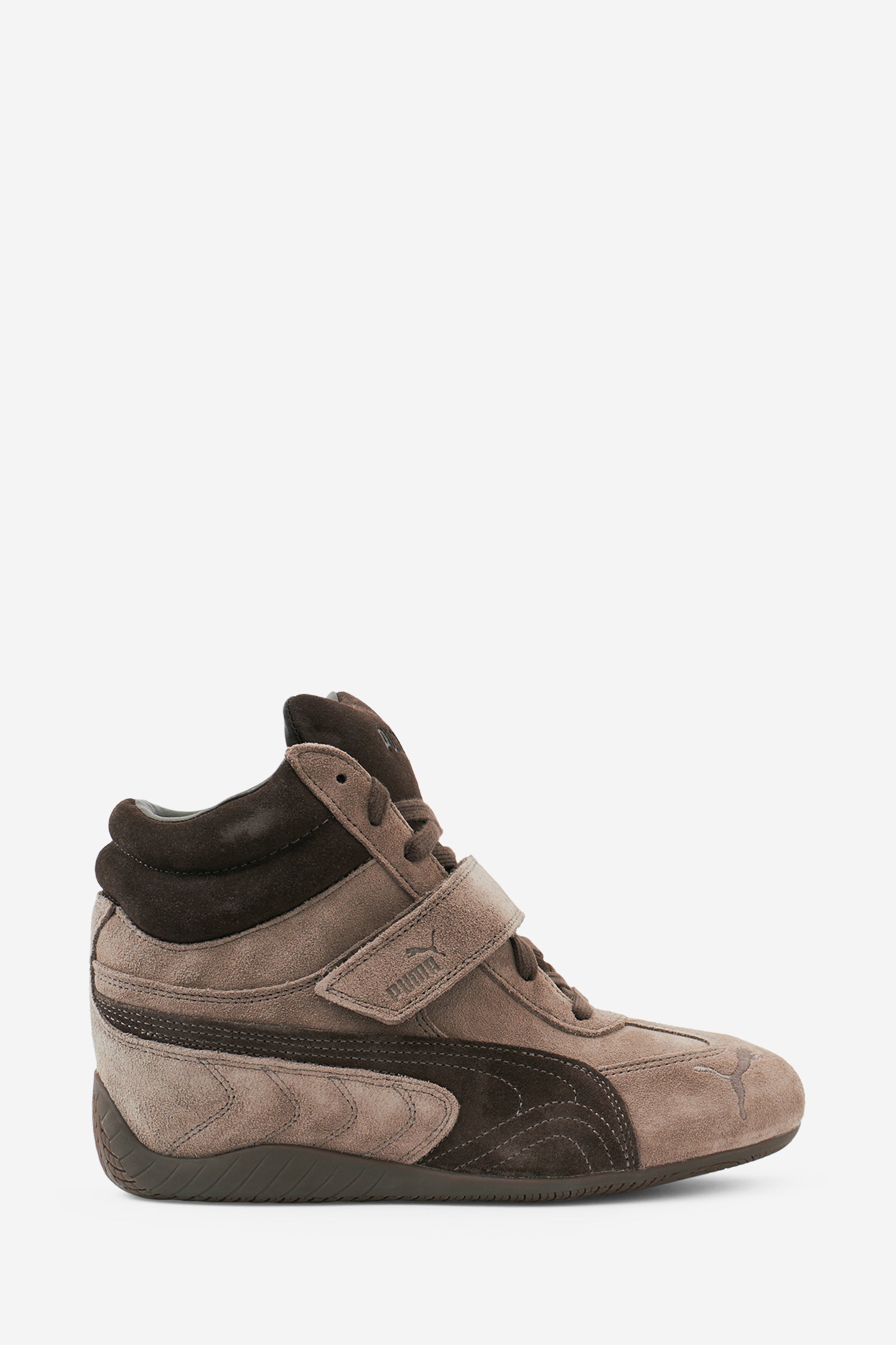 La Speedcat Wedge trasforma un'icona con un tocco moderno, con zeppa nascosta e cinturini con gancio e anello per uno stile elevato. Questo design si erge in maniera aerodinamica.